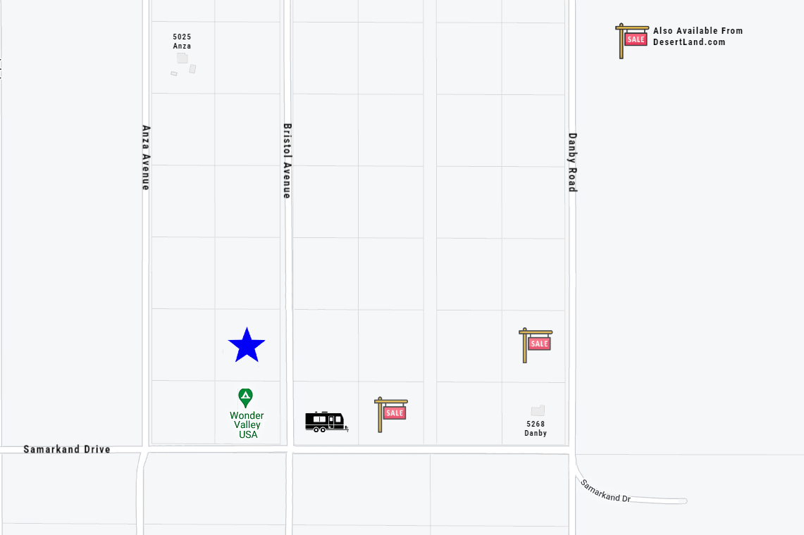 DesertLand.com's property transactions are conducted through a traditional escrow with a 3rd party escrow company in Palm Springs. All properties are sold with title insurance. We do not require a credit check. Don't have the down payment? Look into our Down Payment Program (DPP). On the DPP program it is only $346.17 to start owning the land on Bristol Avenue today.